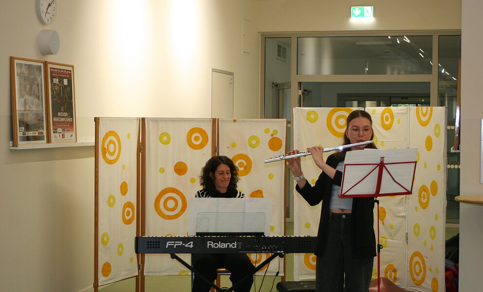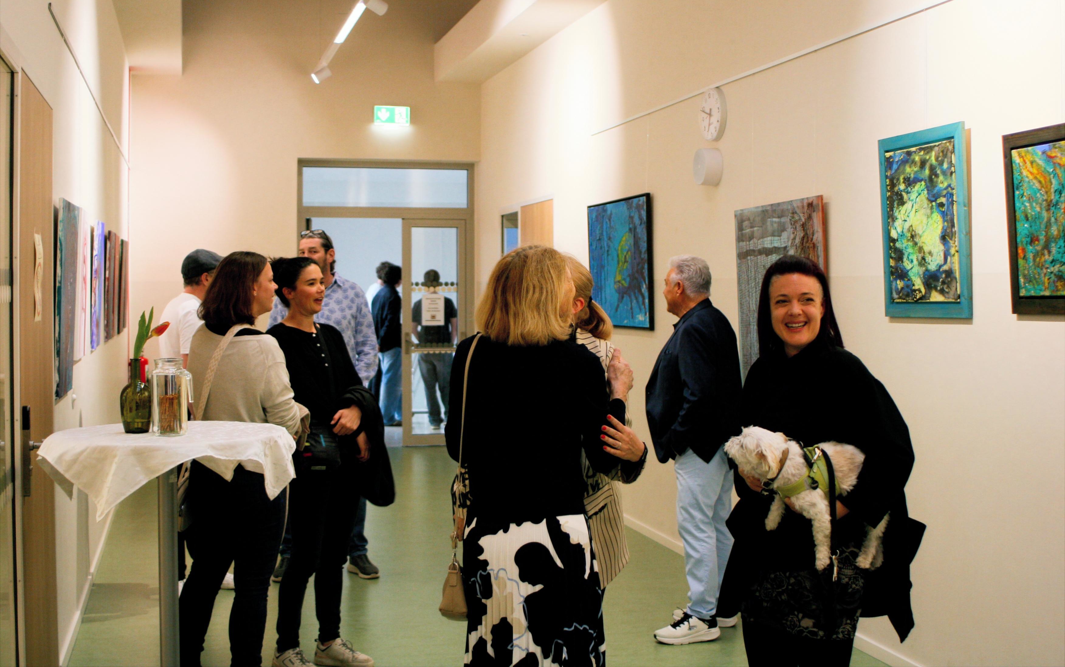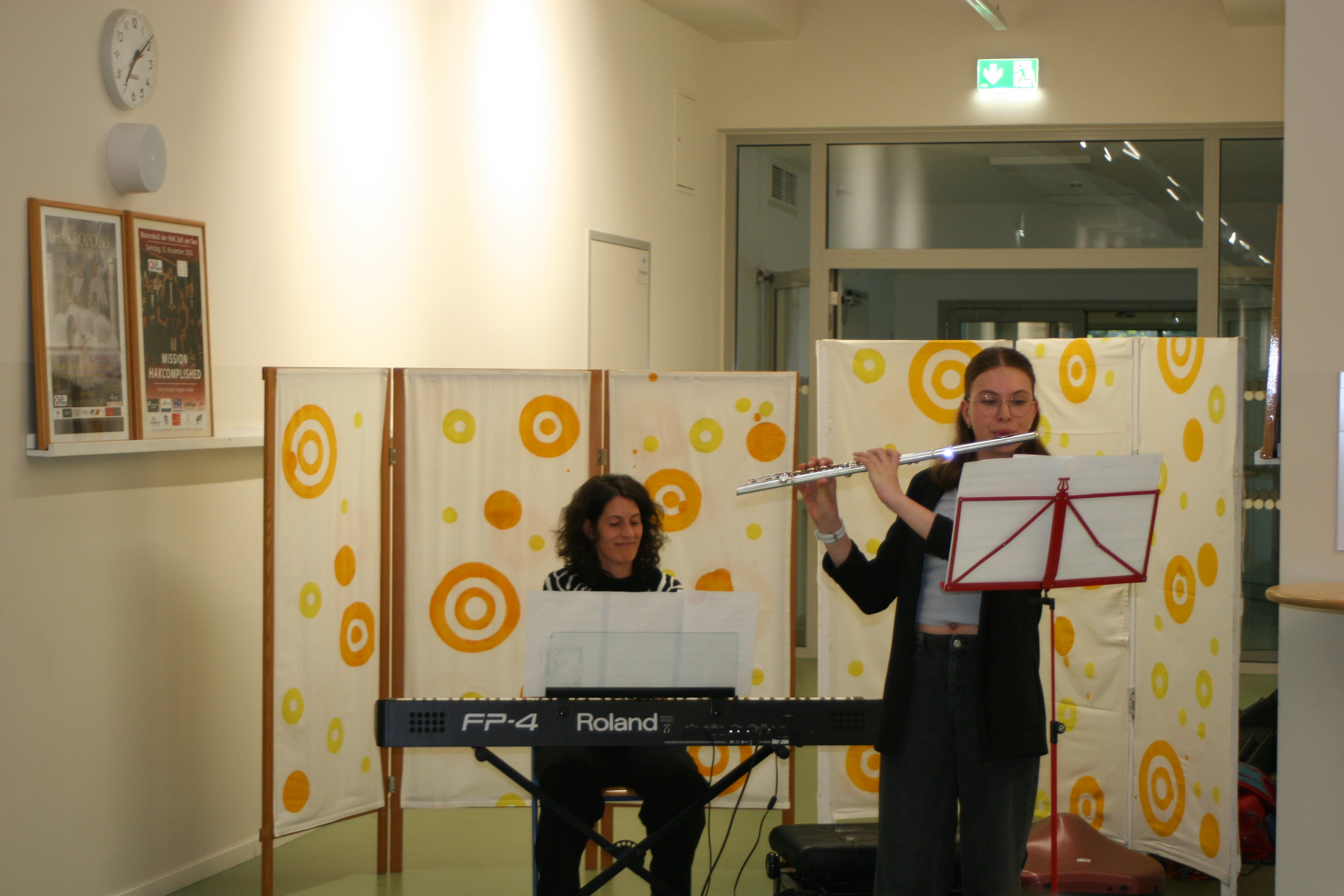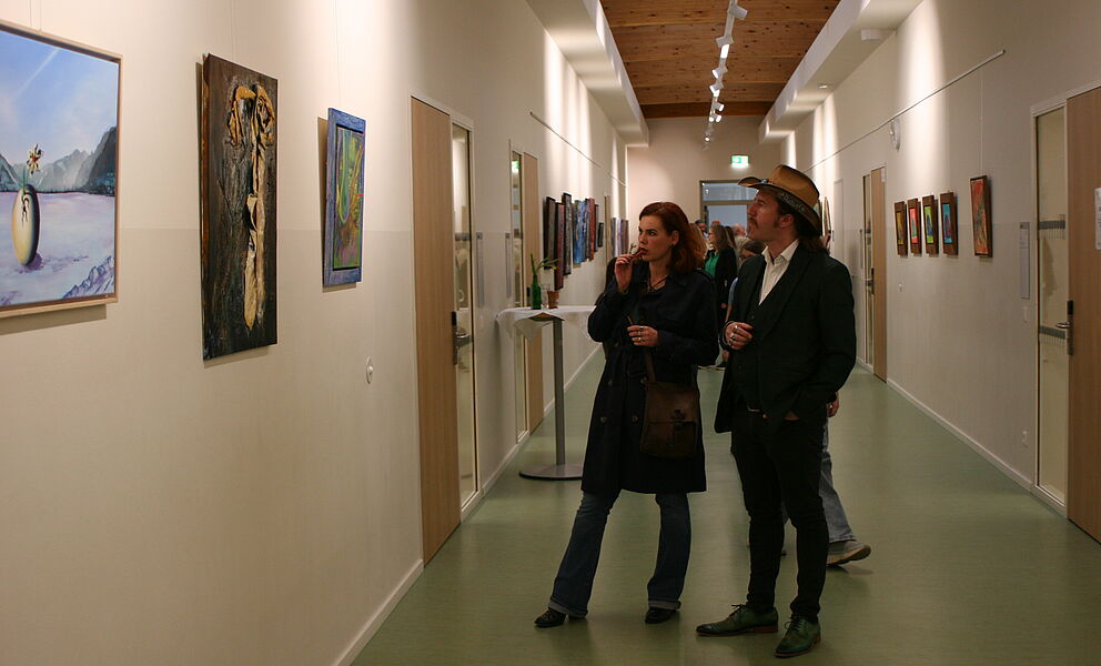 Am 16. April 2026 war es endlich wieder so weit. Unsere Schule lud zur ersten Ausstellung im neuen Bundeschulzentrum in Zell am See ein. Mag. art. Claudia Trentini bespielte die Wände der Schulgalerie mit eindrucksvollen Bildern aus den letzten zehn Jahren ihres künstlerischen Schaffens. Zu diesem Anlass gab es eine feierliche Eröffnung mit musikalischen Talenten aus unserer Schule: Anna-Lena Schwaiger, Vivien Rohm und Samuel Leitner umrahmten mit Querflöte, Cello und Klavier die Eröffnungsreden und ernteten dafür tosenden Applaus.