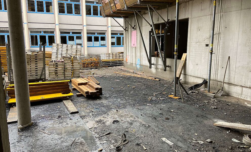 Heizraum und alte HAK werden im Sommer 24 abgerissen, dann entsteht eine wunderschöne freie Fläche